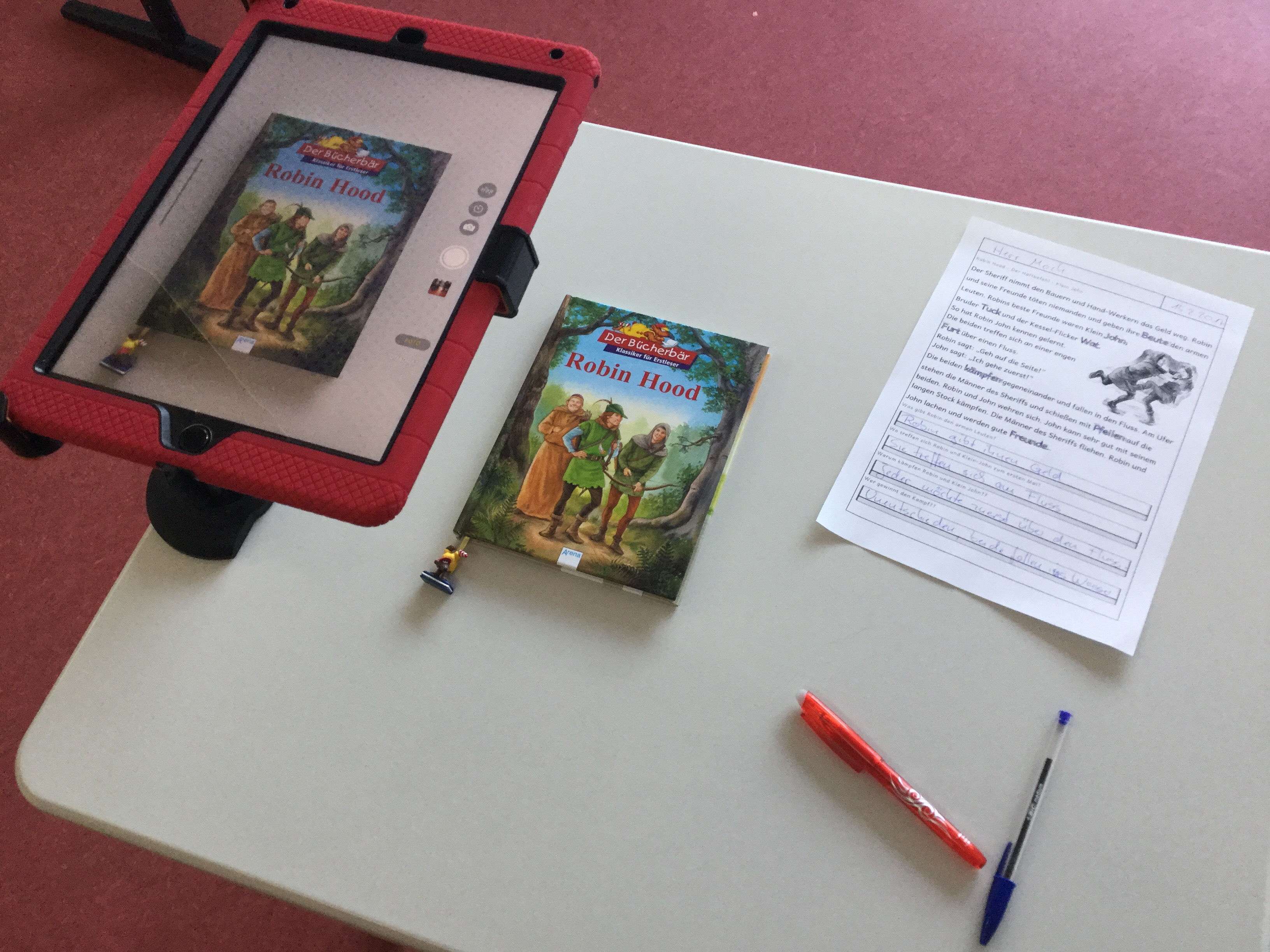 Mit einer Dokumentenkamera kann man Arbeitsblätter, Bücher oder kleine Gegenstände filmen und auf dem Beamer gleichzeitig der Klasse präsentieren. Ein iPad kann im Zusammenspiel mit einem Beamer und einem Apple TV diese Aufgabe auch bewältigen.