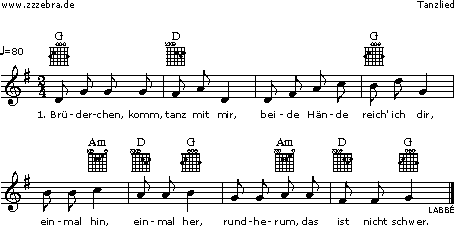 Bei unserem Lied ergiebt sich diese Akkordfolge (Großbuchstaben stehen für Dur, Kleinbuchstaben stehen für Moll):