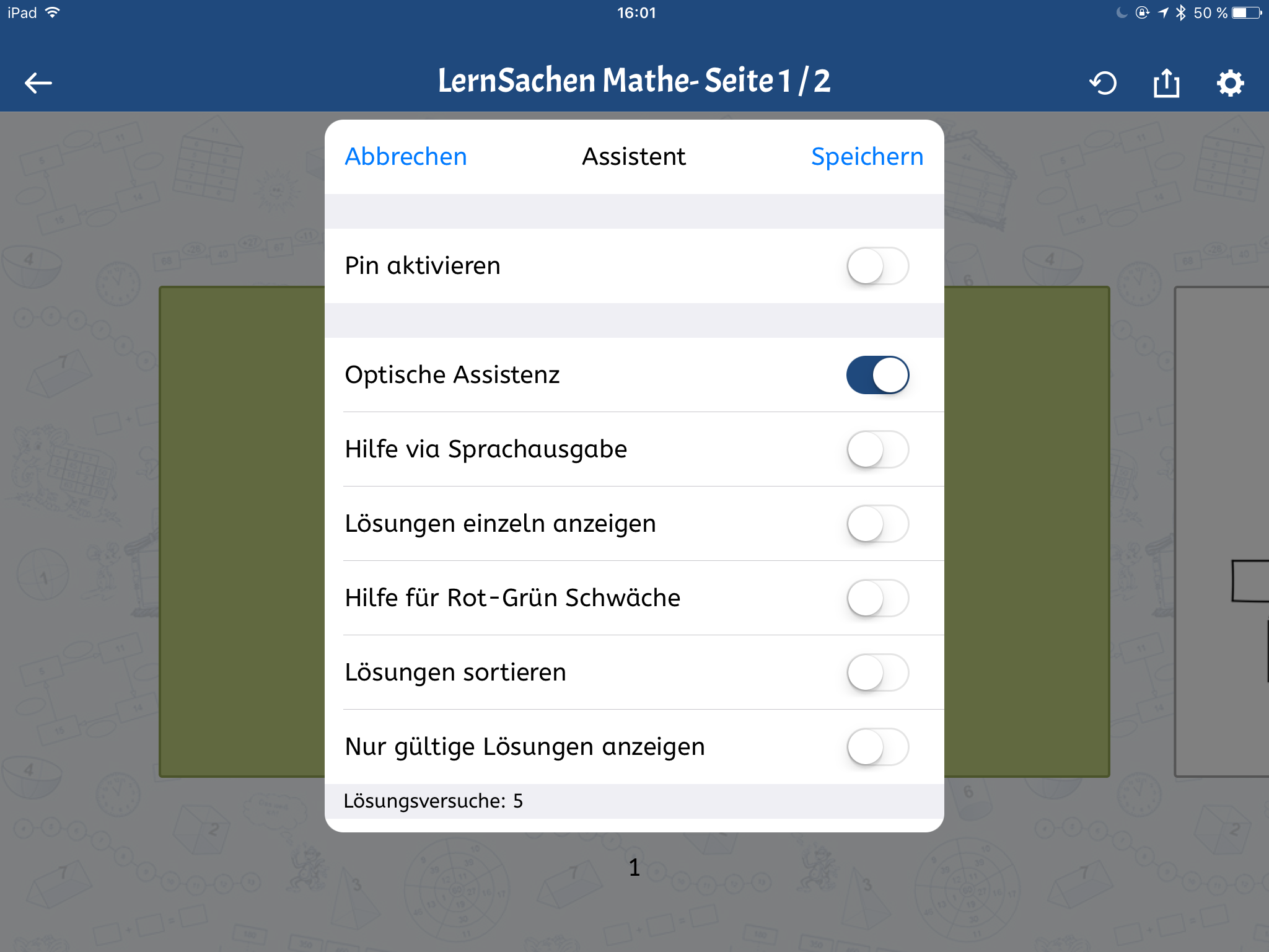 Zusätzlich lassen sich bei individuellen Lernschwächen noch verschiedene Hilfestellungen im Programm einstellen: