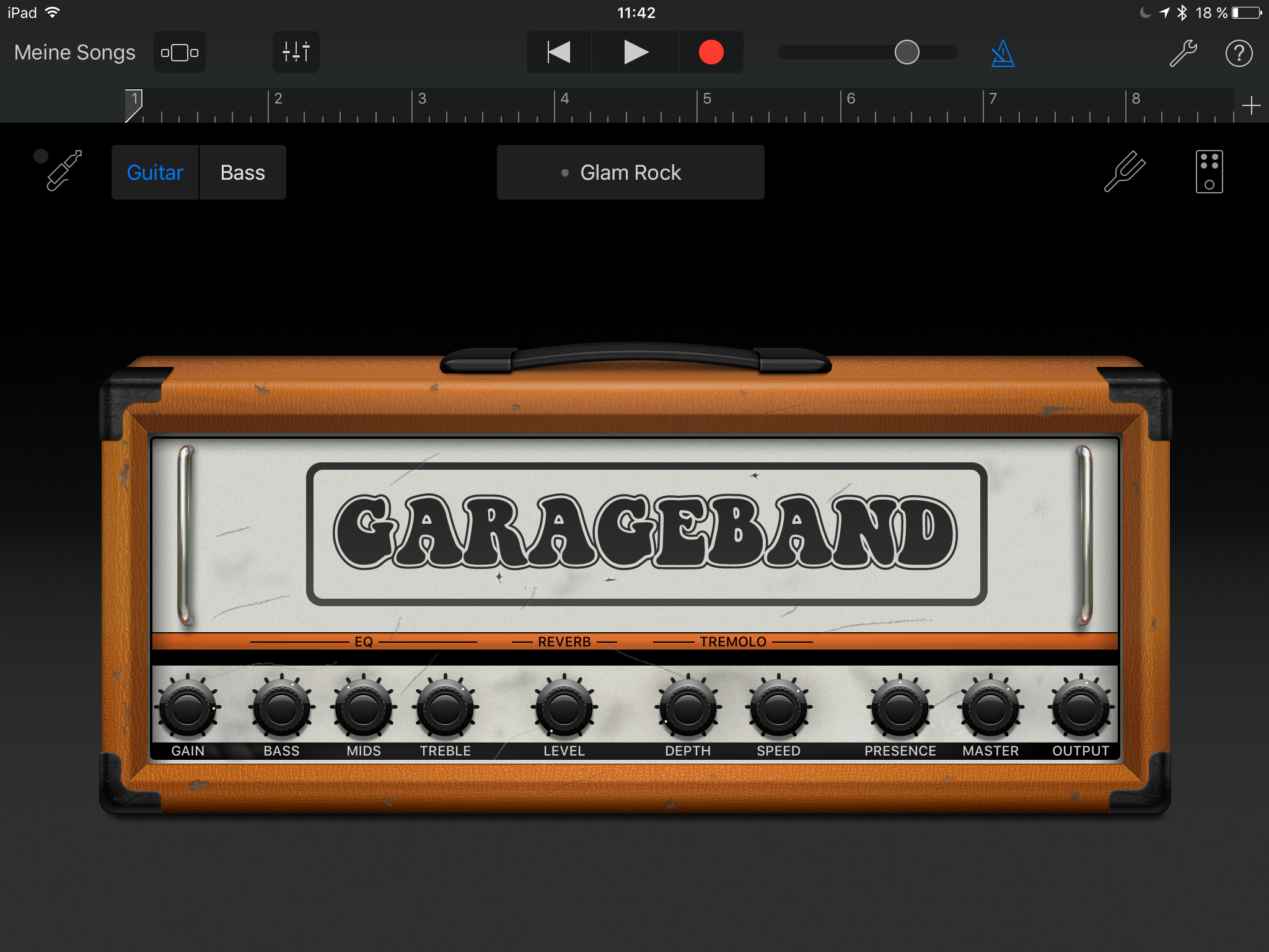 Der Gitarrensound kann nun aufgenommen und mit dem Mehrspureditor von Garageband in ein Instrumenten Arrangement eingebettet werden.