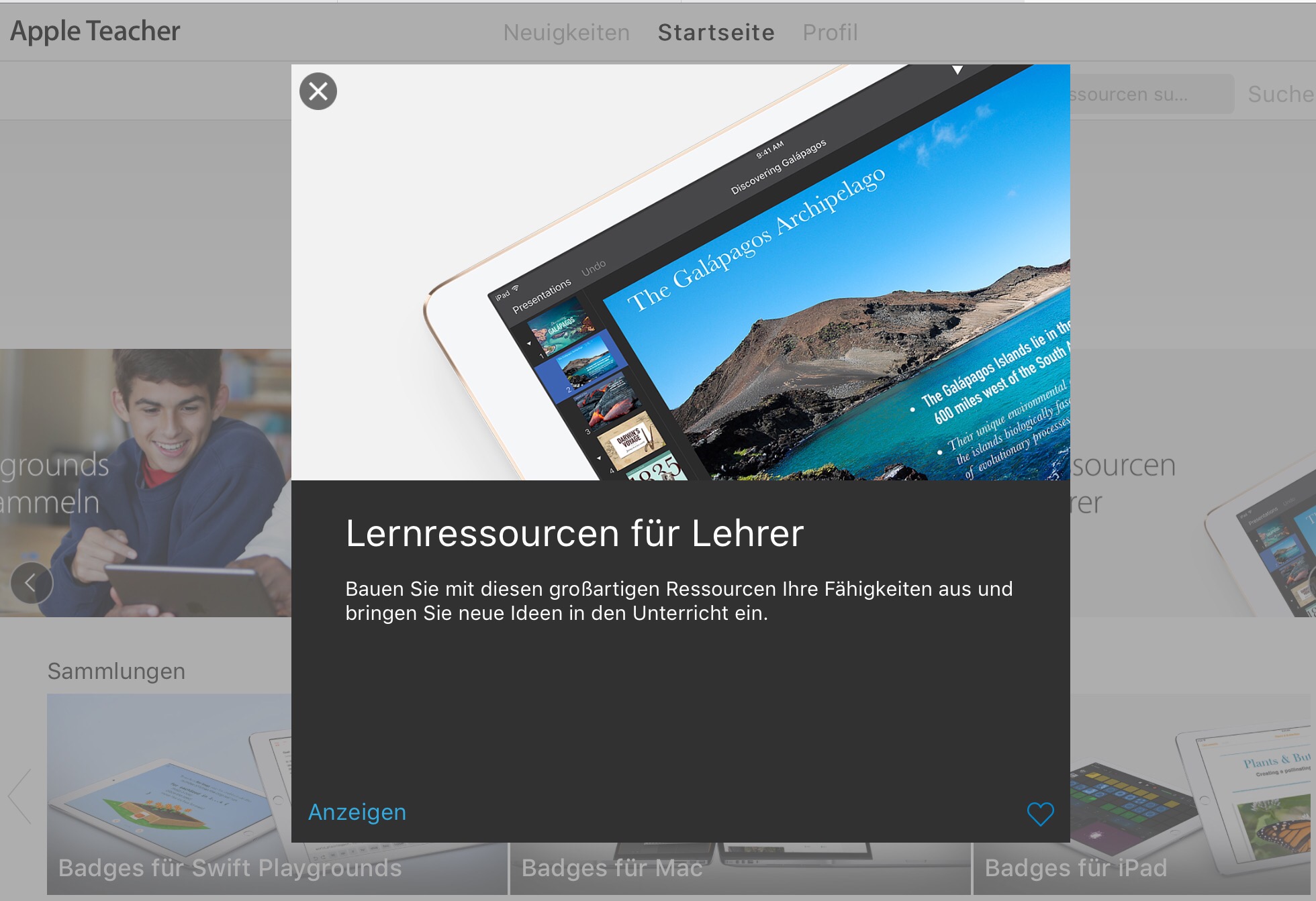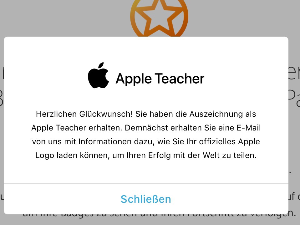 Endlich ist es soweit. Ich habe einen Test gemacht und darf mich offiziell „Apple Teacher“ nennen! Das kann aber eigentlich jeder machen! Apple bietet diesen Service neuerdings an. Man muss sich dazu bei Apple registrieren und einen kleinen Test absolvieren, der so im mittleren Schwierigkeitsbereich liegt. Danach erhält man Zugang zu vielen Bildungsresourcen, die Apple zur Verfügung stellt.