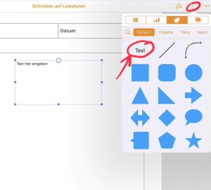 Als erstes schreibt man einen Beispieltext in ein Textfeld und wählt die gewünschte Schriftart aus. Wie man z. B. Schulschriften auf das iPad bekommt, habe ich bereits in einem anderen Artikel beschrieben.