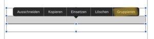 Dieses Rechteck kopiert man und fügt es dann mit einem Druck irgendwo auf der Seite erneut ein. Kopieren und Einfügen bedeutet quasi „Duplizieren“. Dies macht man zwei mal und färbt die neuen Rechtecke mit dem Pinsel Menü weiß. Man positioniert die Rechtecke übereinander und GRUPPIERT die drei Formen. Dies erreicht man, indem man eine Form drückt und hält und dann mit einem Finger der anderen Hand der Reihe nach die anderen Formen kurz andrückt. In dem erscheinenden Menü wählt man nun „Gruppieren“.