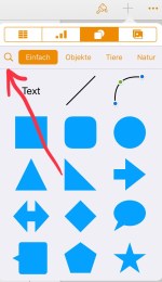 Ein Bild, oder ein Clipart können wir über das PLUS-Symbol rechts oben einfügen.