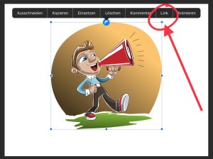 Auf der ersten Folie muss ich jetzt noch den Schalter definieren. Dazu drücke ich auf das eingefügte Objekt und wähle im Kontextmenü den Punkt „Link“