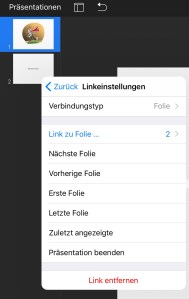 Hier wähle ich nun als Sprungziel die Folie aus, auf der mein Video mit dem Sound abläuft.