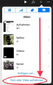 Auf dieser zweiten Folie füge ich nun über das Plus – Symbol den Punkt „Foto oder Video aufnehmen“ aus.