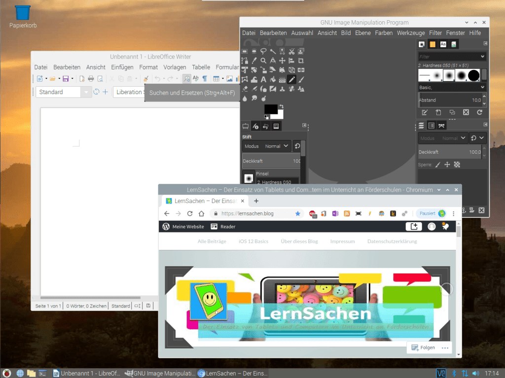 Der kleine, günstige Einplatinen-Mini-Computer lässt sich vielseitig konfigurieren und für viele Zwecke benutzen. Beim Einsatz in der Schule kann er viele Funktionen übernehmen, die sonst nur mit aufwändiger Infrastruktur oder mit sehr viel teurerer Hardware realisiert werden können. Dabei ist das Gerät mobil, bringt sein eigenes WLAN mit und lässt sich unkompliziert mit allen Plattformen nutzen. Ich zeige hier die Einrichtung von 3 verschiedenen Lösungen: Ein kompletter Desktop Rechner (Raspbian), eine kollaborative Speicher Lösung (NextCloudPi) und eine Lernumgebung mit Kurs-Struktur (MoodleBox). Für alle Lösungen gibt es Schritt für Schritt Anleitungen, so dass man kein begnadeter Programmierer sein muss, um den Raspi einzurichten.