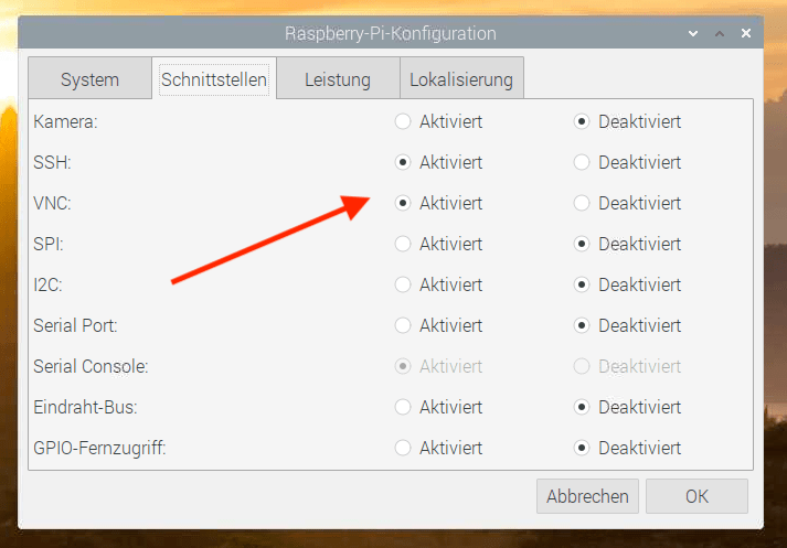 Menü – Einstellungen – Raspberry-Pi-Konfiguration – Schnittstellen