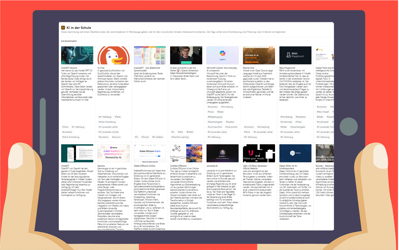 Diese filterbare Bookmarkliste hilft geeignete Tools für unterschiedliche Einsatzzwecke in der Schule zu finden.