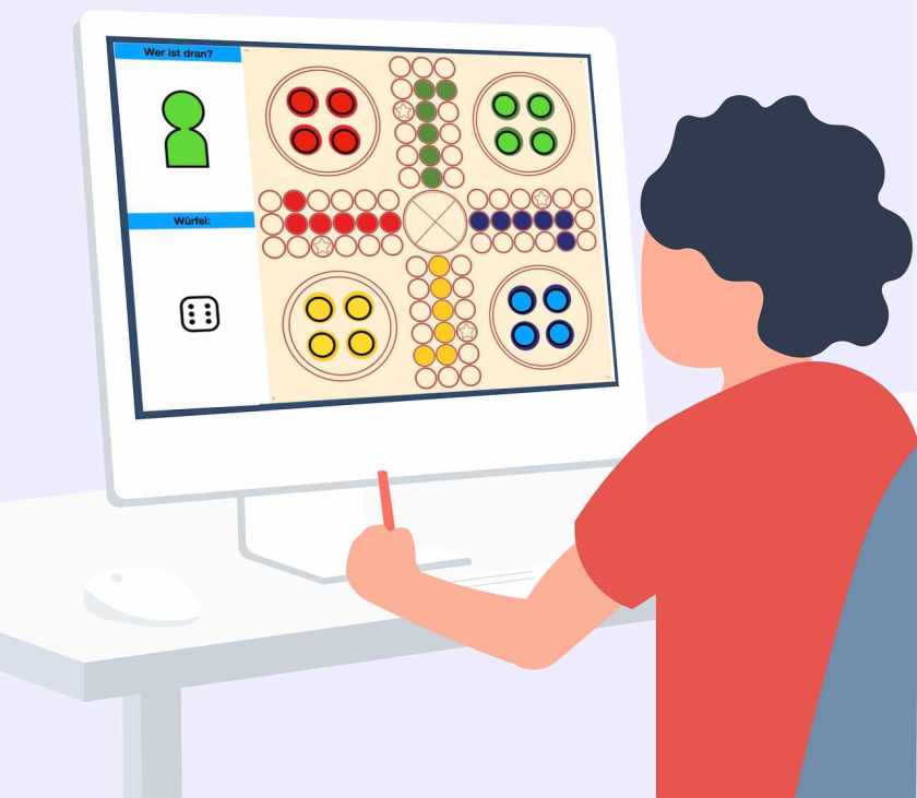 Damit Videokonferenzen nicht nur aus passivem Zuschauen besteht, kann man kollaborative Elemente einbauen. In dem Beispiel zeige ich, wie man das Brettspiel „Mensch ärgere Dich nicht!“ mit einer freigegeben Präsentation spielen kann. Jeder Spieler kann seine Figuren tatsächlich selber bewegen und sieht die Züge der Mitspieler. Diese Lösung funktioniert auch auf anderen Systemen, wie PowerPoint (in Microsoft 365) oder mit Google Präsentationen. Dabei muss die Software nicht auf den Geräten installiert sein oder ein Konto für jeden eröffnet werden. Alles läuft als WebApp im Browser ab.