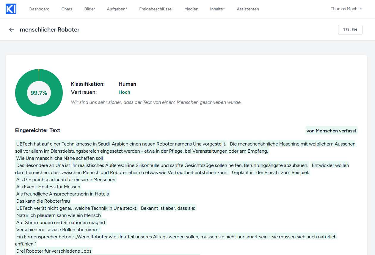 Ein besonders anschauliches Beispiel für den Unterrichtseinsatz ist die Nasen-Schreib-Übung: Ein blauer Ball folgt der Nase der Person vor der Kamera. Auf dem Bildschirm sind Kugeln in Buchstabenform angeordnet, die nacheinander mit dem nasengesteuerten Ball berührt werden müssen. Diese Übung demonstriert auf spielerische Weise, wie KI Gesichtserkennung funktioniert und macht abstrakte Konzepte konkret erfahrbar.