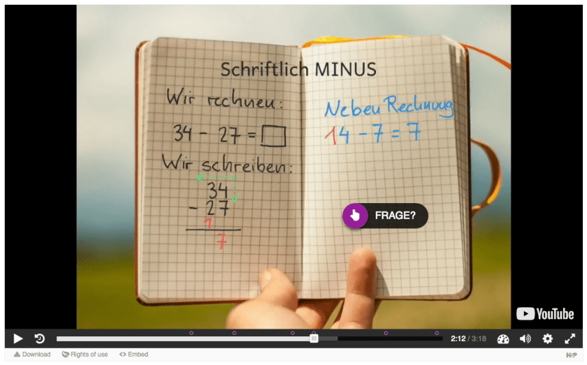Interaktive Videos unterbrechen den passiven Medienkonsum und erfordern vom Zuschauer eine Lernaktivität z. B. in Form einer Verständnisfrage. Mit dem Online Tool H5P lässt sich das sehr gut umsetzen. Das Ergebnis muss dann aber auf einer Lernplattform, wie Moodle oder Mebis eingebettet werden. So etwas kann nicht unbedingt jede Lehrkraft ohne weiteres, von der Verfügbarkeit von Online Inhalten in vielen Schulen möchte ich hier gar nicht anfangen.