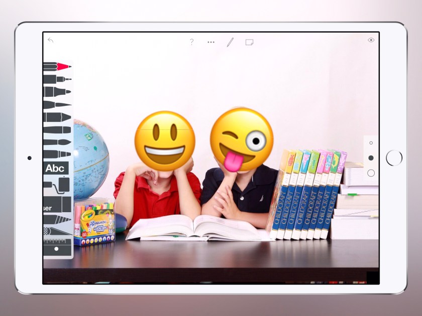 In der Schule wird es immer schwieriger, Fotos aus dem Unterricht zu veröffentlichen. Gesichter von Schülern dürfen meistens nicht mehr erkennbar sein. Mit einem einfachen Bildbearbeitungsprogramm lässt sich eine Textebene mit Smileys über das Bild legen. Damit werden die Personen anonymisiert. Im Video zeige ich den Prozess auf einem iPad mit der App „Sketches School“.
