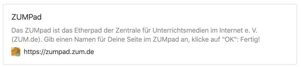 Beispielseite: https://zumpad.zum.de/p/Kollaborative_Tools