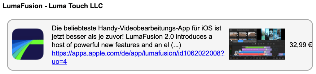 Hier kommt die App Luma Fusion ins Spiel. Mit ihr lassen sich etliche Profifunktionen wie in den großen Desktop Programmen nutzen. Und auch der Export (Das Rendering) gelingt mit dem lüfterlosen Gerät in erstaunlich kurzen Zeiträumen.